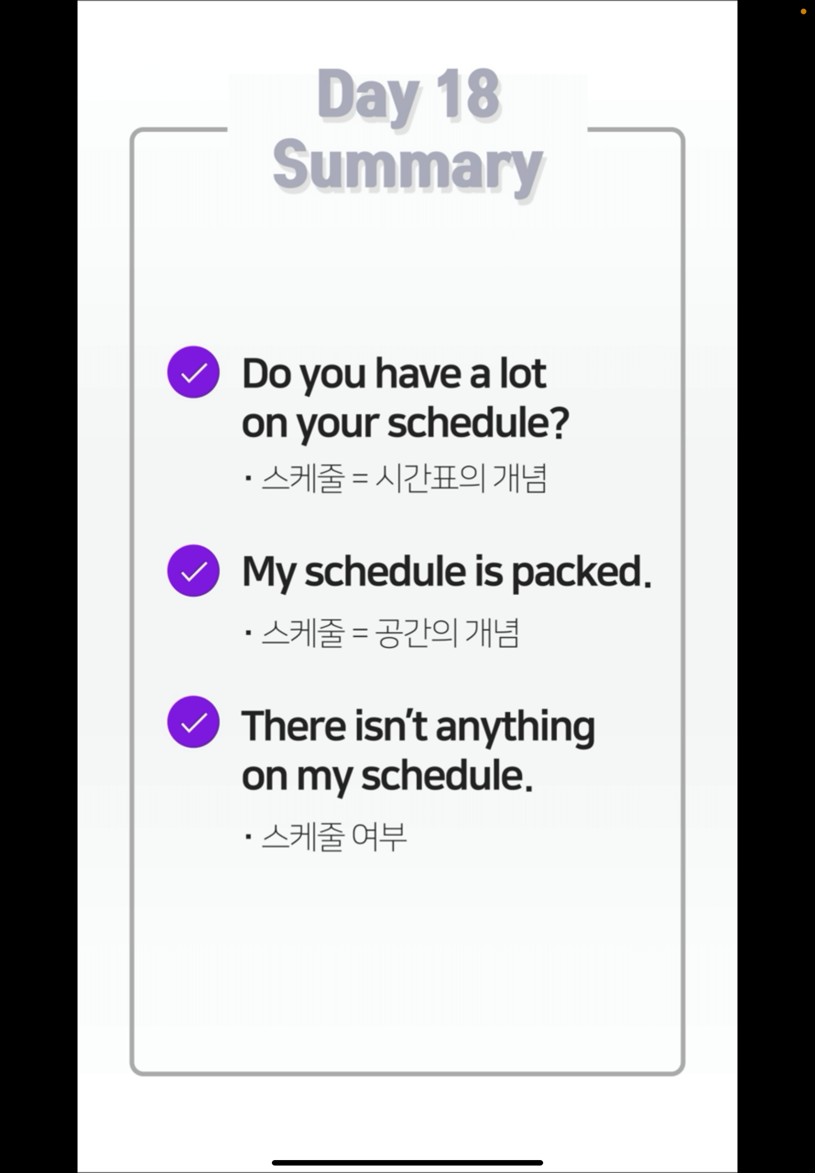 - 단순히 보고 듣고 배우는 것이 아니라 직접 계속 말해보면서 하기에 회화 연습하기 좋아요. 여러 영어 회화 어플을 사용해봤는데 역시 말하는 방식이 회화에는 가장 좋은 거 같더라고요.