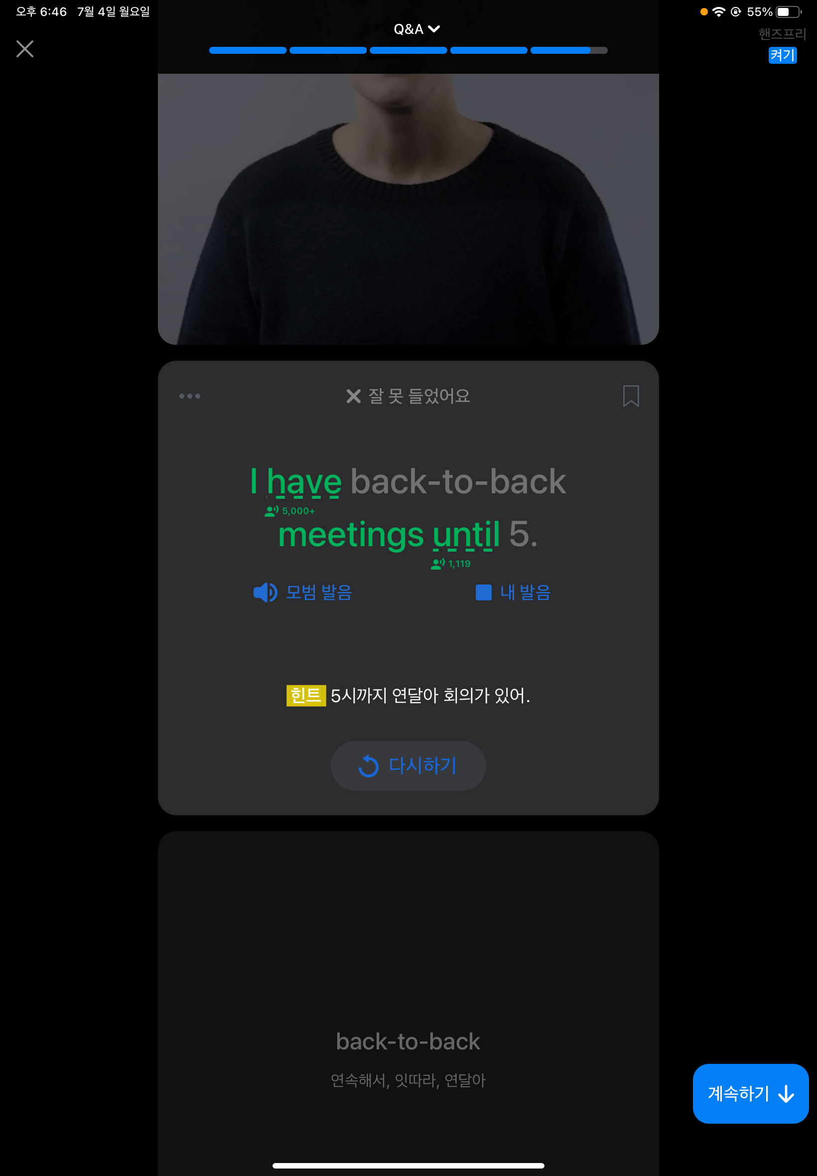 한 가지 더 이 어플 쉐도잉 연습하기도 좋습니다.